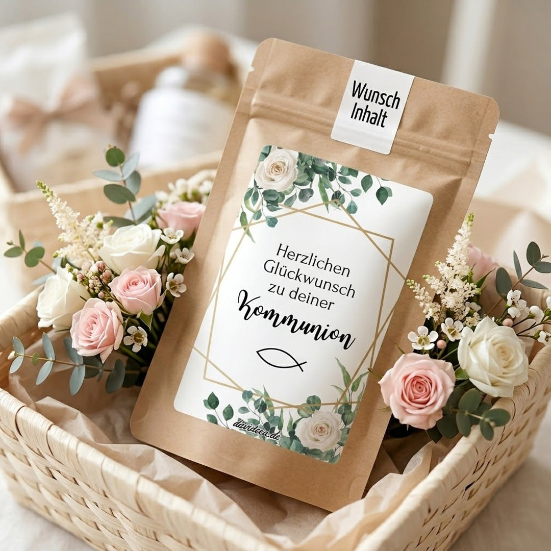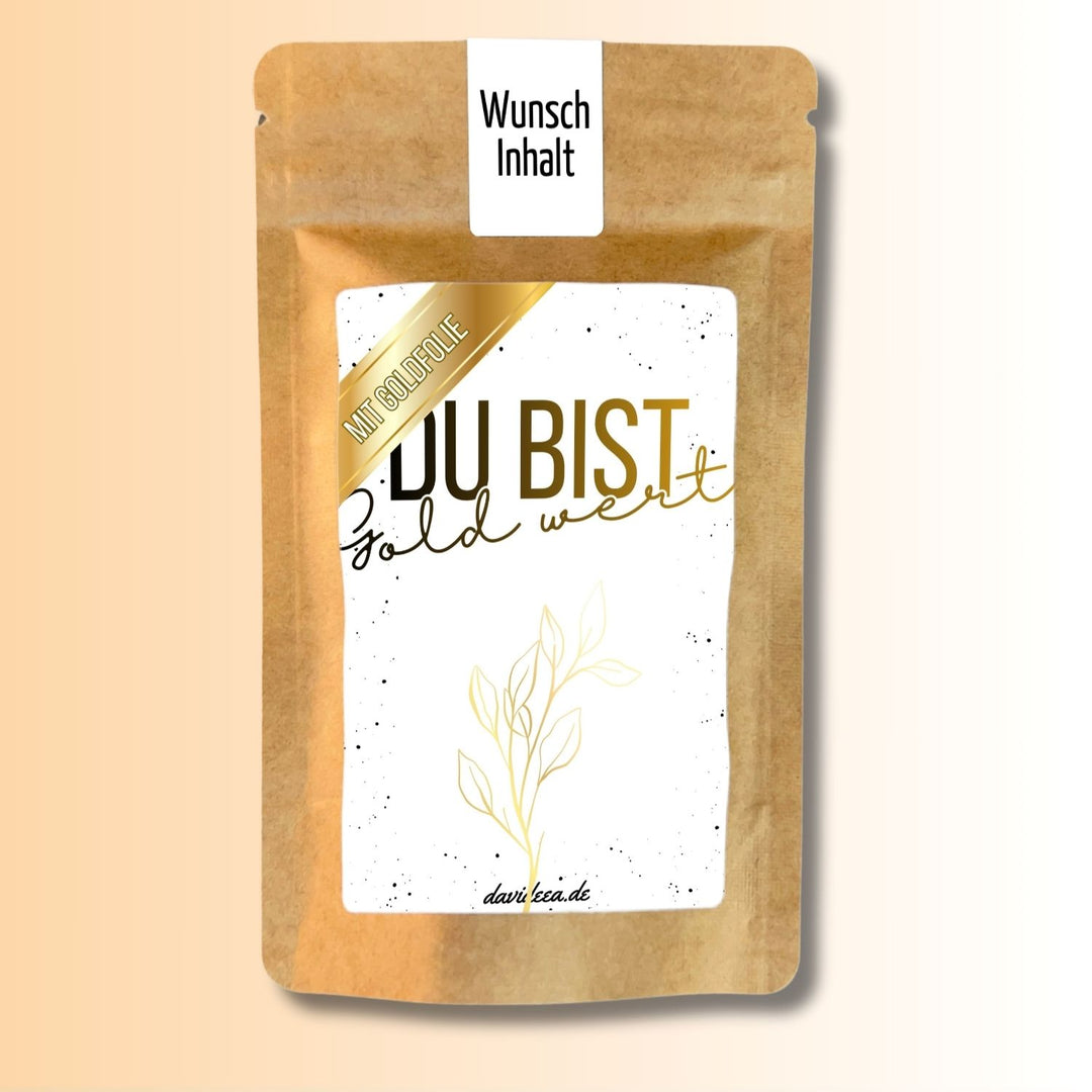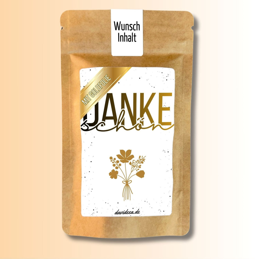 Tütchen mit Sprüchen: Bedruckte Mini‑Tütchen, die mit Produkten wie Kaffee, Tee, Kakao, Eistee, Instant‑Getränken oder Kaffeebohnen befüllt und verschenkt werden können