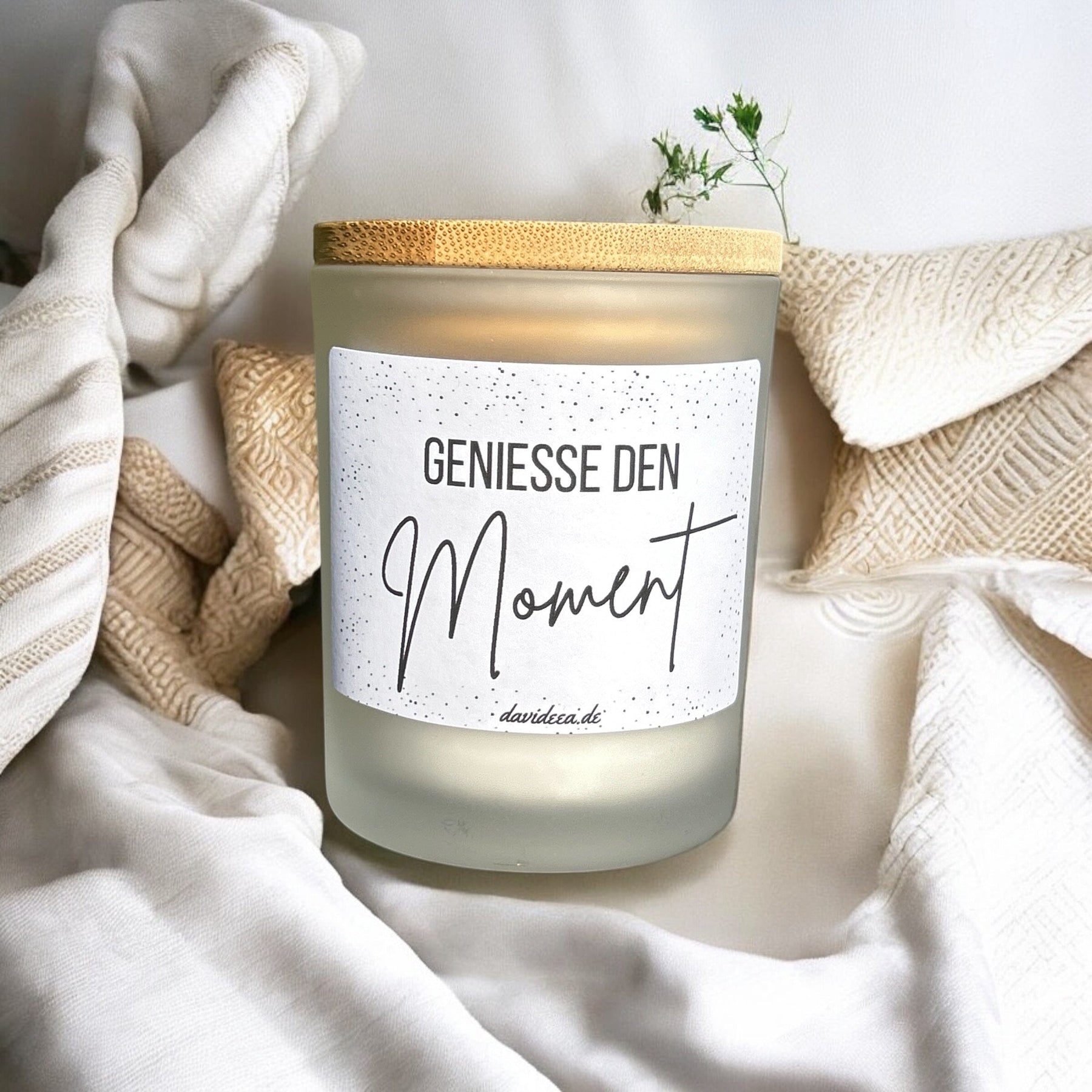 Entdecken Sie unsere neue, freche Kerze im eleganten Mattglas mit hochwertigem Holzdeckel. Diese besondere Kerze ist nicht nur ein Hingucker in jedem Raum, sondern bringt mit ihren lustigen und frechen Sprüchen auf dem Etikett auch ein Lächeln in Ihr Zuhause.