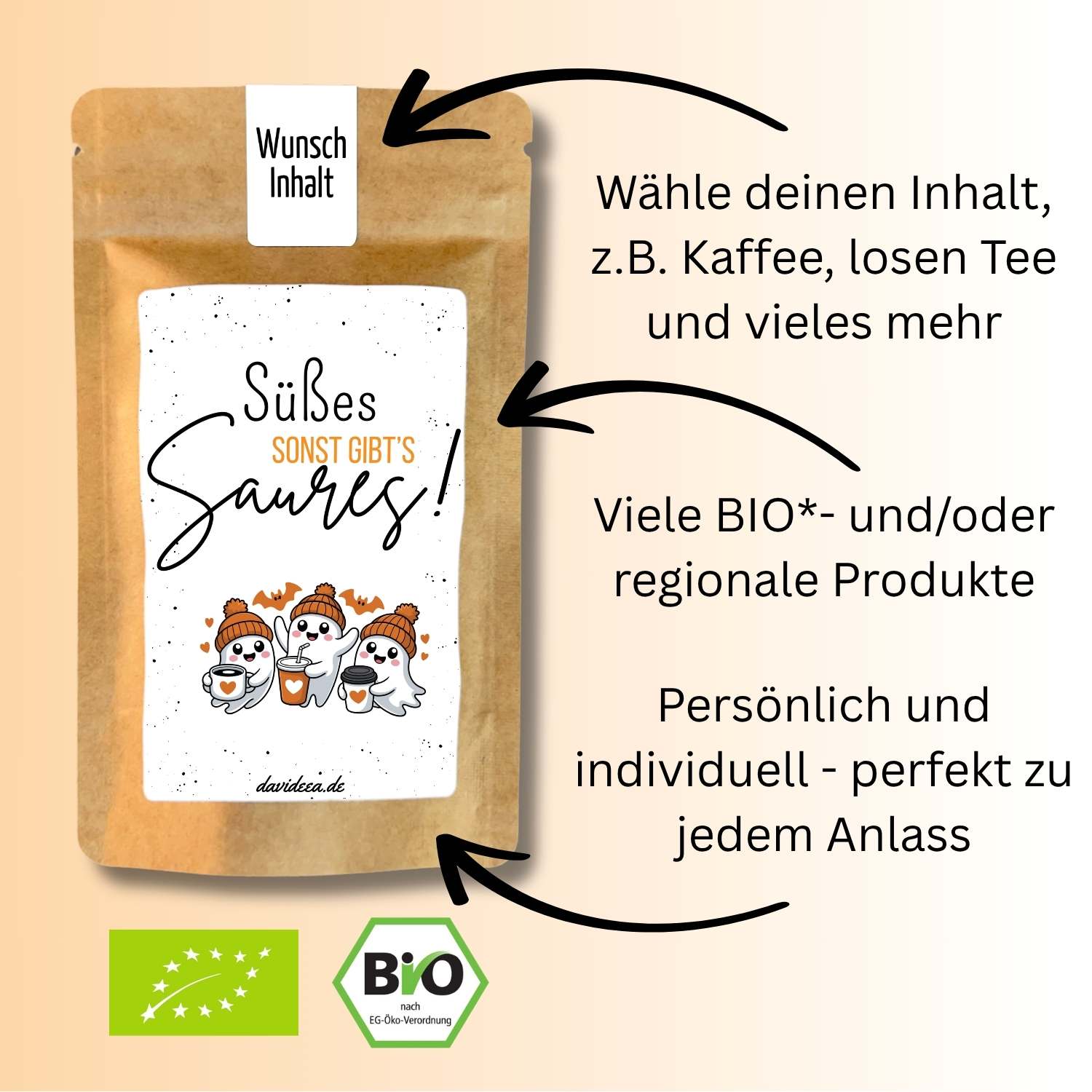Das Besondere: Sie können den Inhalt selbst bestimmen! Überraschen Sie Ihre Liebsten mit ihrer Lieblingssorte Tee, Kaffee oder Eistee. Wir bieten eine große Auswahl an hochwertigen Fülloptionen, die jeden Geschmack treffen. ☕🍵